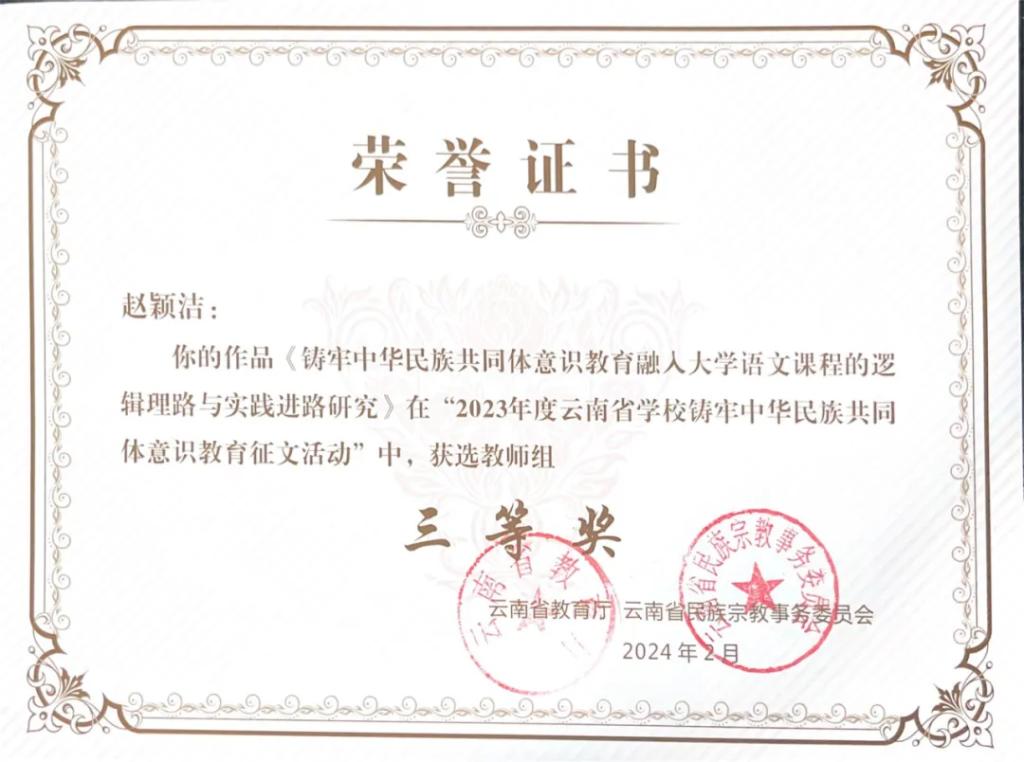 【喜报】我校在2023年度云南省学校铸牢中华民族共同体意识教育征文中喜获佳绩