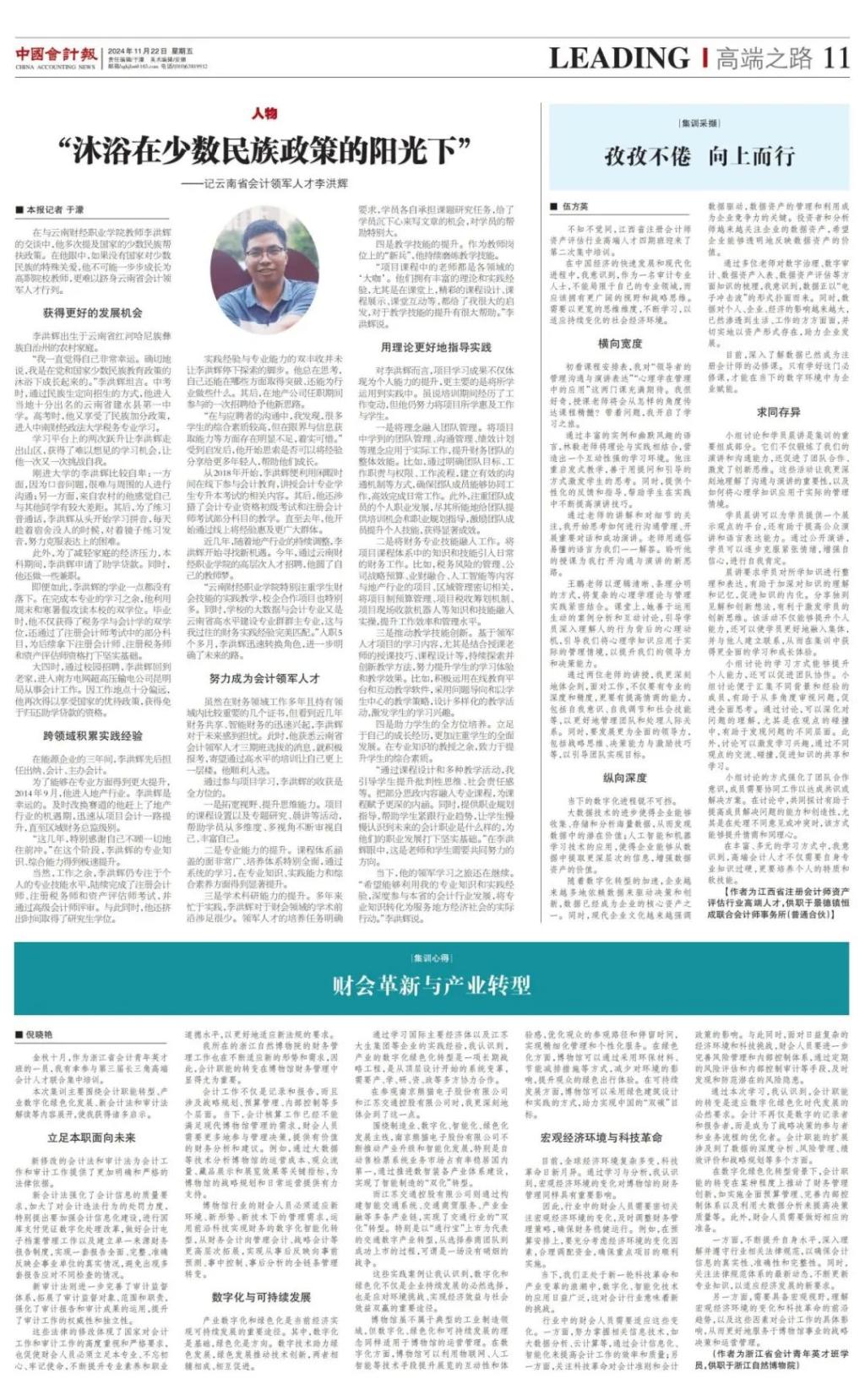 我校李洪辉老师接受《中国会计报》专访