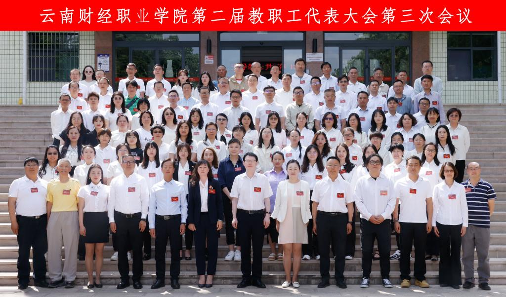 今年是新中国成立75周年、学校实施“十四五”事业发展规划的重要之年,也是落实“1186”行动计划,推动“双高”建设提质增效、实现高质量发展的关键之年。在这重要的时期,2024年4月18日,学校在报告厅召开云南财经职业学院第二届教职工代表大会第三次会议。学校领导班子出席会议,大会由党委副书记、工会主席仲新主持。