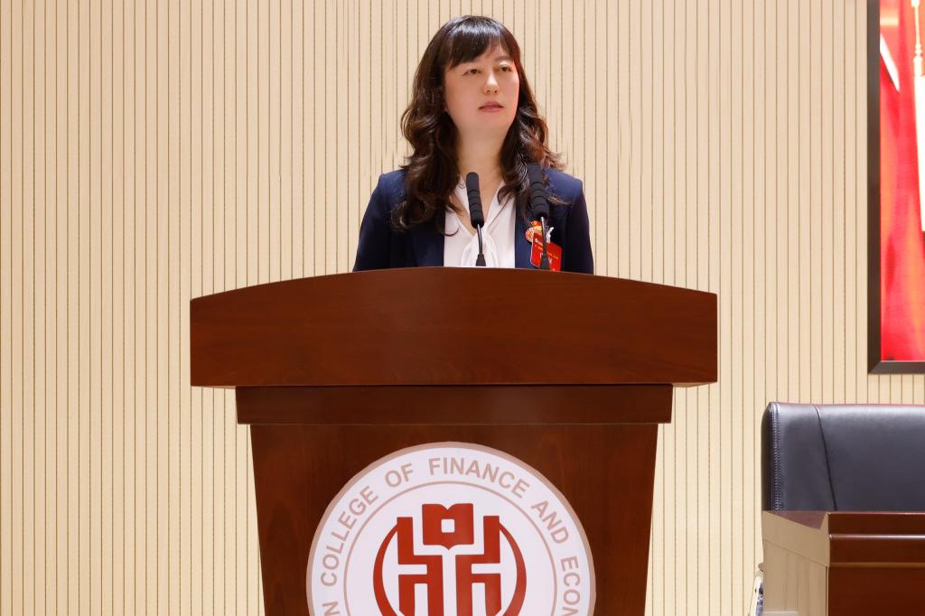 大会按照议程,党委副书记、校长邹丽代表学校作《踔厉奋发 团结实干 奋力书写学校高质量发展新篇章》的工作报告,财务处处长刘嘉谦受李雄副校长委托作学校2023年财务工作报告,党委副书记、工会主席仲新作《凝心聚力真抓实干在谱写学校高质量发展新篇章中彰显工会力量》的工会工作报告。