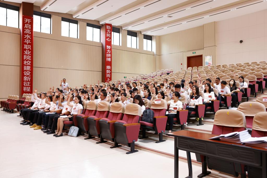 会议号召全校教职工,在国家对职业教育的高度重视和大力支持下,我们有责任也有信心,把握时代脉搏,加快发展步伐,我们要紧密团结在以习近平同志为核心的党中央周围,在学校党委的坚强领导下,通力合作、同舟共济,在各自的工作岗位上,发挥智慧和力量,施展抱负和才华,以身立教,为人师表,做崇高师德的践行者。大力弘扬和践行教育家精神,以强烈的主人翁意识和高度负责的主人翁精神,认真履职尽责,以学生为中心,以质量为核心,以特色为方向,构建适应新质生产力发展的人才培育与发展体系,全面提升学校的综合实力和社会影响力,踔厉奋发、团结实干,奋力书写财职院高质量发展新篇章!