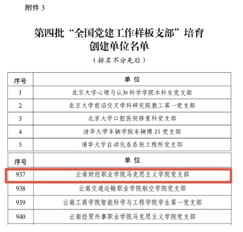 近日,教育部办公厅印发《第四批全国党建工作示范高校、标杆院系、样板支部培育创建单位名单的通知》,我校马克思主义学院党支部入选“全国党建工作样板支部”培育创建单位,成为学校首个获批此殊荣的基层党组织,实现了我校在该标志性成果领域的零的突破。