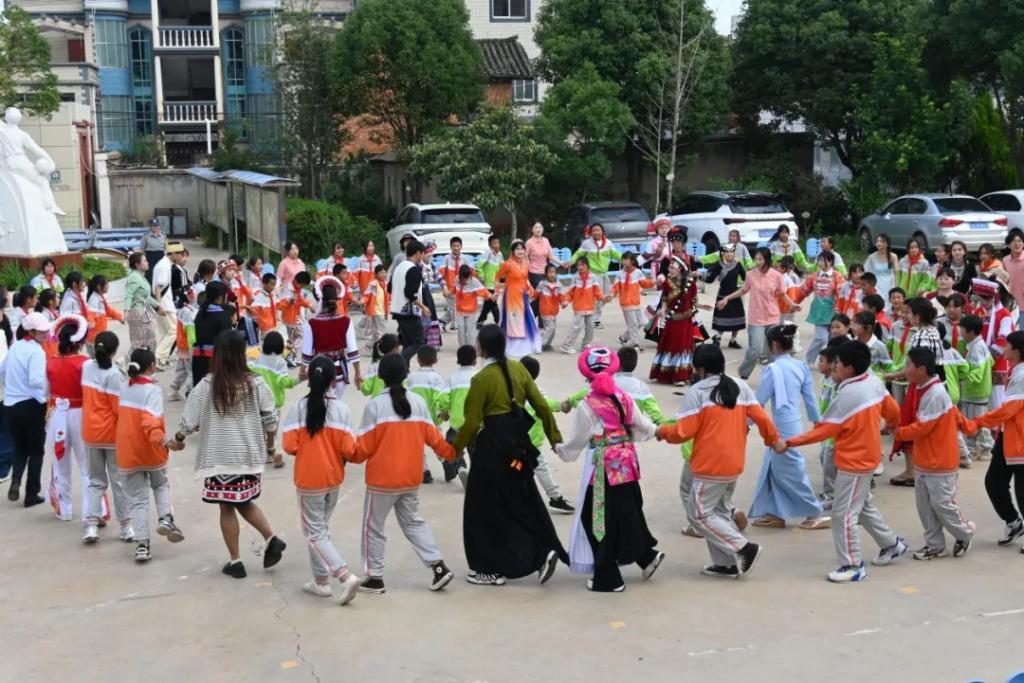 同心共话民族情。数字商学院组织部分少数民族师生与团结小学学生开展系列活动,共同感受中华优秀传统文化。共同朗诵《盛开的民族团结之花》,培养民族团结意识,增强民族自豪感;共同编织中国结,传承和弘扬中华优秀传统文化;共同领略民族风情,通过民族才艺展示、民族打跳活动,在欢乐中感叹中华民族传统文化的“独特美”与“共融美”。