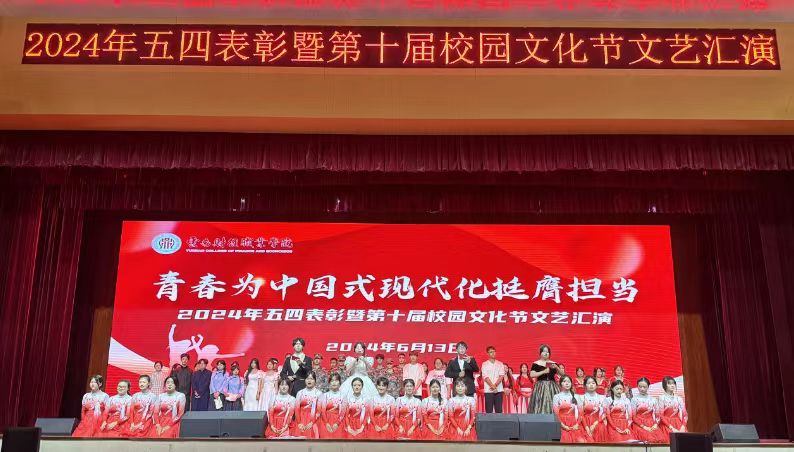 一年来,学校各级团组织带领广大团员青年深入学习贯彻习近平总书记关于青年工作的重要思想,深刻学习领会党的二十大精神,在习近平新时代中国特色社会主义思想指引下我校青年昂扬向上、奋发有为,涌现出了一大批先进典型。为表彰先进,选树典型,激励广大团员、团干部和基层团组织更加奋发有为,我校于2024年6月13日下午在龙泉校区大礼堂举行“青春为中国式现代化挺膺担当”2024年五四表彰暨第十届校园文化节文艺汇演。学校党委副书记仲新出席本次活动并讲话,组织部、宣传部、学工部、团委、各二级学院负责人、团总支,校院两级学生会,全体受表彰对象以及青年学生代表出席本次活动。