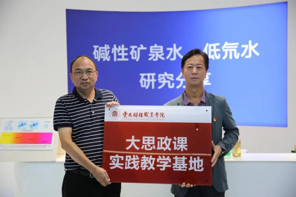 学校党委副书记仲新代表学校与云南天外天饮料有限责任公司负责人签订了合作协议,双方共建校企协同育人示范点。在“大思政课”实践教学基地挂牌仪式上,仲新指出,要养成低碳健康的生活方式,提高环保意识和健康意识,让健康和快乐并存。