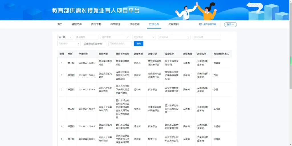 近日,教育部发布了第三期供需对接就业育人项目立项名单,学校获得10个项目的立项资格,本次获批立项的项目涵盖“就业实习基地”“定向人才培养培训”“人力资源提升”等多个方面,充分展现了学校对于人才培养和就业工作的全面布局和深度推进。