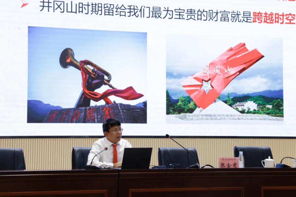 井冈山大学马克思主义学院院长肖发生以《传承弘扬跨越时空的井冈山精神》为题,从“坚定执着追理想”“实事求是闯新路”“艰苦奋斗攻难关”“依靠群众求胜利”四个方面阐述了井冈山精神的内涵、核心、基石和重要法宝,为现场听众补足了精神上的“钙”。他提醒参学人员要饮水思源,倍加珍惜我们党开创的中国特色社会主义,坚定道路自信、理论自信、制度自信、文化自信。