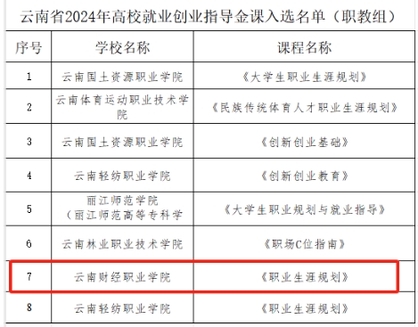 根据《云南省教育厅关于开展生涯教育和就业指导“四个一”活动的通知》要求,经高校推荐、材料评审和现场说课展示,云南省教育厅共遴选出云南省2024年高校就业创业指导金课20门、就业指导直播课30节、生涯咨询特色工作室8个。