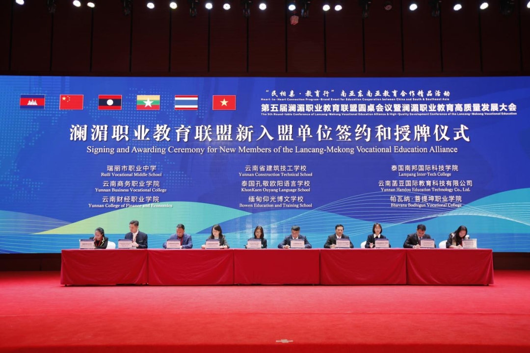近日,由云南省教育厅支持,云南民族大学主办的第五届澜湄职业教育联盟圆桌会议暨澜湄职业教育高质量发展大会在昆明举行,来自云南省内外高校、省内企业领导以及泰国、柬埔寨、缅甸等湄公河国家的高校领导、专家学者、企业代表参加会议。我校党委副书记、校长邹丽应邀参会。