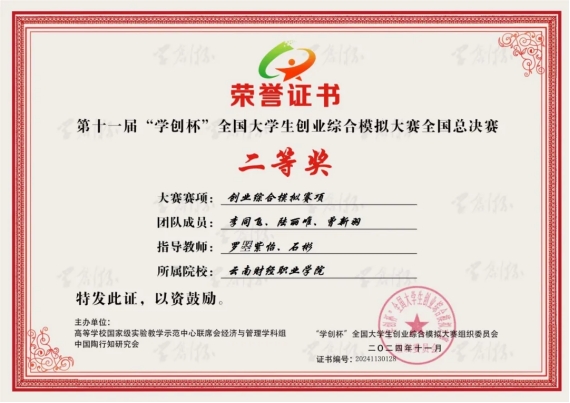 在刚刚落下帷幕的第十一届“学创杯”全国大学生创业综合模拟大赛全国总决赛(职教组)中,我校财税与金融学院学生朱莲、杨金梅、许妍凭借深厚的专业知识底蕴、冷静的现场发挥以及默契的团队协作,最终问鼎全国总决赛特等奖!智慧会计学院学生李同飞、陆丽唯、曾新羽组成的代表队荣获了二等奖,本次比赛成绩标志着我校在创新创业教育领域取得了新的突破。