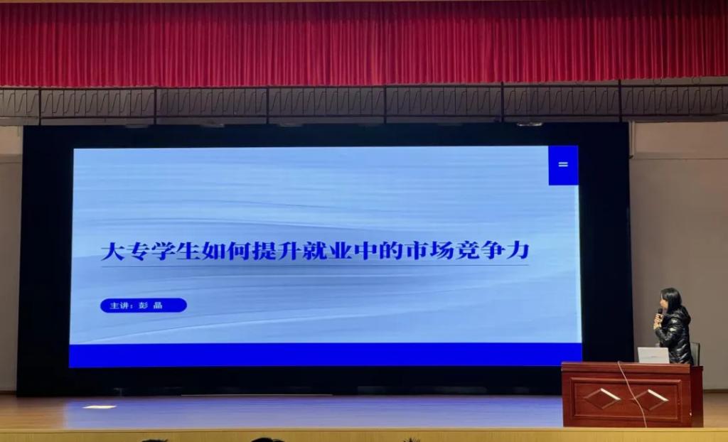 彭晶老师以“大学生如何提升就业中的市场竞争力”为切入点,从培养专业技能,积累实践经验,提高综合素质等方面阐述了高职学生参加“创新、创意及创业挑战赛” “技能大赛”等赛事对提升高职毕业生在就业中的市场竞争力的重要性,为学生开启洞察时代机遇和挑战的新窗口,让学生们进一步了解就业市场的大环境。