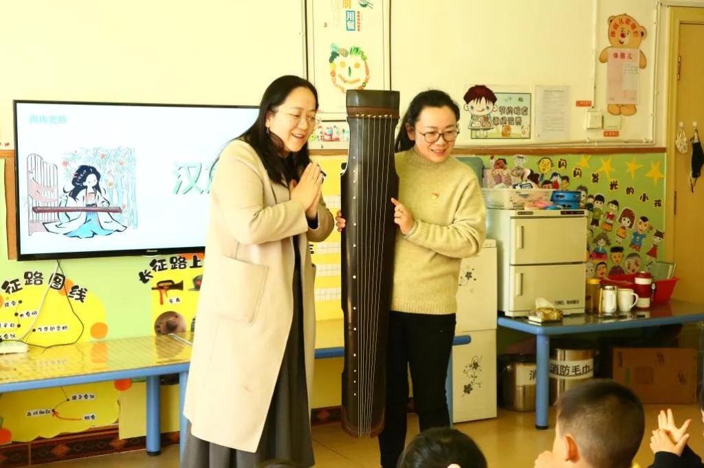 马克思主义学院党支部教师代表杨冉、吴琳娜为小朋友们带来了《中华民族一家亲》主题活动。两位老师带领小朋友们认识了五十六个民族、现场展示并讲解汉族传统乐器古琴,引导孩子们民族团结从小做起,从我做起,将中华民族共同体意识牢记心间、融入血液。
