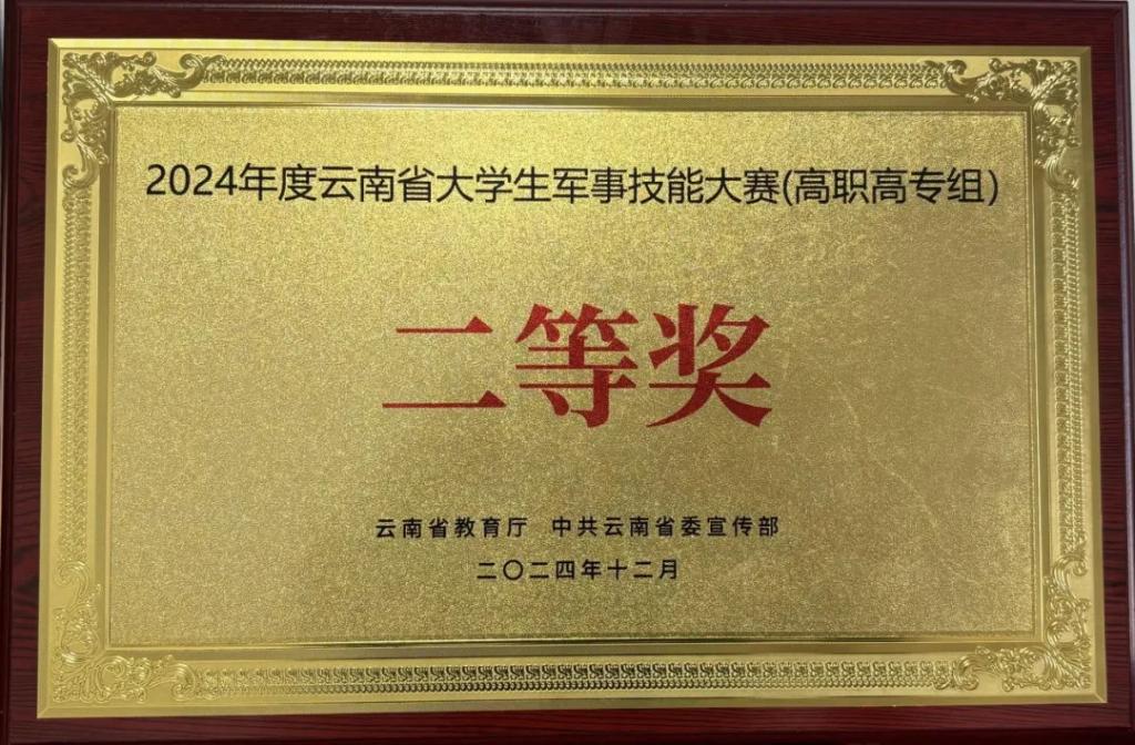 2024年12月8日-13日,2024年度云南省大学生军事技能大赛第一、第二阶段在文山麻栗坡、昆明理工大学分别开展,经过五公里越野、手榴弹投掷、障碍跑、射击、定向运动等5个项目的激烈角逐,大赛在昆明理工大学呈贡校区圆满落幕。我校选手斩获高职高专组二等奖。