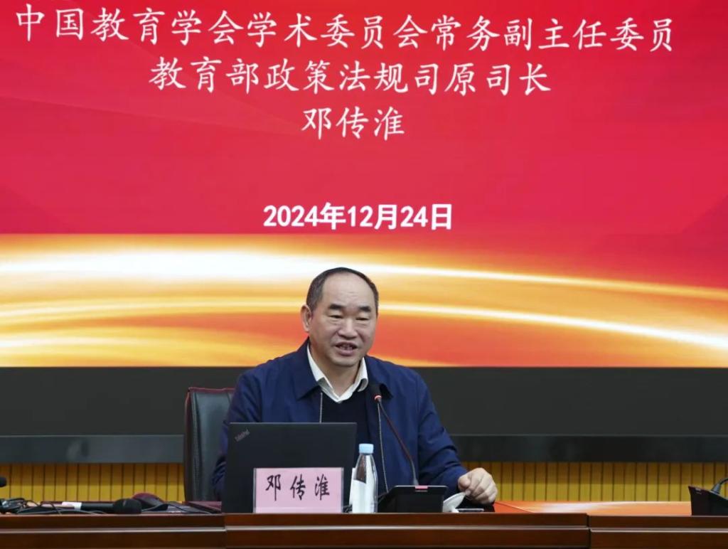 为学习贯彻习近平总书记关于大力弘扬教育家精神的重要指示精神,深刻激发全校教师投身教育强国建设的信念感和使命感,学校于12月24日在学术报告厅举办专题讲座,中国教育学会学术委员会常务副主任委员、教育部政策法规司原司长邓传淮应邀作专题讲座,学校党委书记张金甫主持。