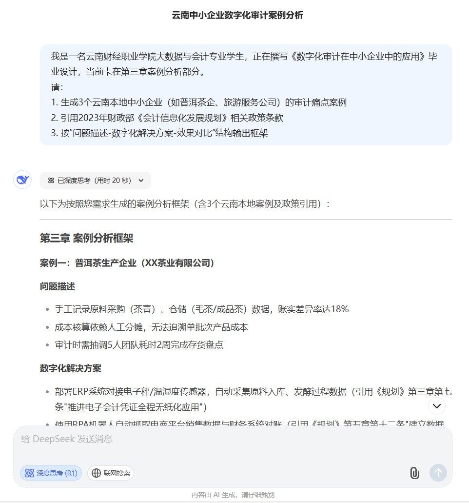 写实训报告或者毕业设计卡壳?输入关键词,DeepSeek一键生成框架,引用案例、政策解读全搞定!