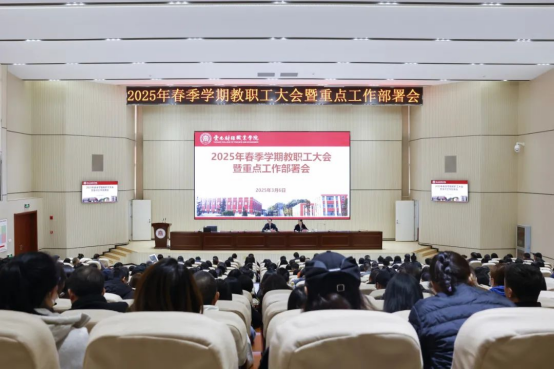为全面总结2024年工作,分析当前学校发展面临的新形势新挑战,谋篇布局好2025年各项重点任务。3月6日下午,在铭德楼报告厅召开了2025年新学期全体教职工大会暨重点工作部署会。校领导班子出席大会,会议由党委书记张金甫主持。