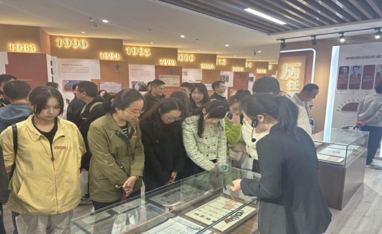 在校史馆参观环节,新进教职工们通过珍贵影像、实物展陈和数字化互动装置,沉浸式感受到学校“立德、立信、立己,达观、达技、达人”的校训。讲解员通过对学校历史、历任领导、学校荣誉、师资队伍等内容的讲解,诠释了学校文化的积淀。新进教职工表示:“了解前辈们的奋斗故事,对财经职教人的身份有了更深认同,也更有信心在岗位上传承创新”。