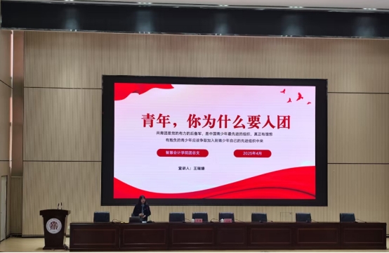 智慧会计学院团总支书记向同学们详细讲解了共青团如何在中国共产党的领导下团结广大青年,积极投身民族解放和国家建设中,并结合在井冈山的学习经历,分享了学习和工作中的感悟和体会。