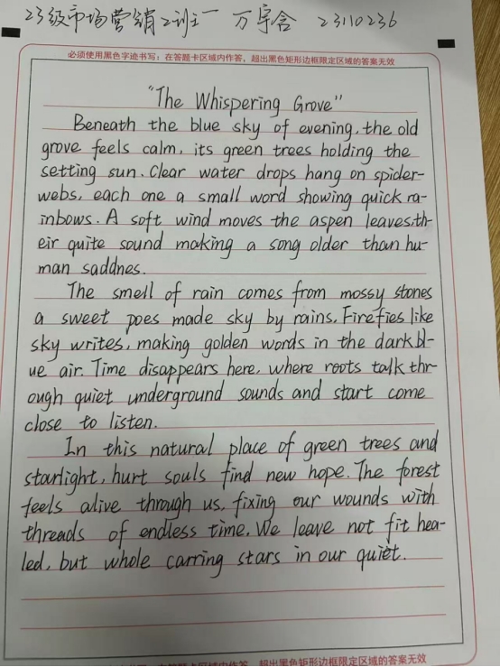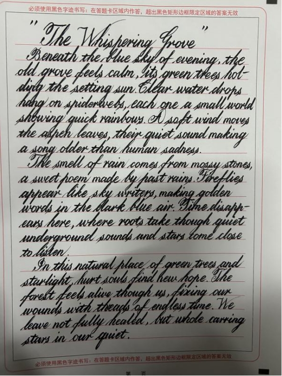 软笔书法赛道则以“历代优秀诗篇”为主题,同学们蘸墨挥毫,体悟着古代诗篇的精髓,笔锋游走间,仿佛穿越千年与古人对话,尽显中华传统书法艺术的博大精深。