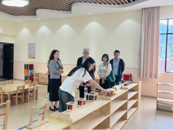 在数字新商科虚拟仿真实训基地,基地负责人详细介绍了实训基地建设背景、设计理念、功能特点及其在教学中的应用情况。通过典型案例和现场演示,来访人员亲身体验了虚拟仿真技术在模拟花卉种植、筛选、包装、发货等产业全链条的实际效果,并就相关硬软件技术开发、资源共享、师资培训等方面与学校教师展开了热烈讨论。同时,一行还参观了数据与信息安全产教融合实训示范基地、婴幼儿混龄教育融合实训室、幼儿照护虚拟仿真多功能实训室。
