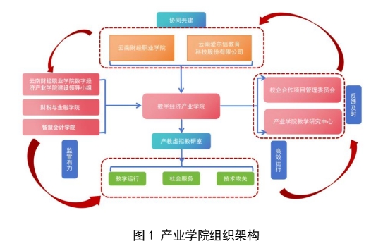 破解专业建设与产业需求脱节痛点,关键在于打破校企壁垒。云南财经职业学院数字经济产业学院创新实施校企“双带头人”治理模式,由校方财税与金融学院与企业负责人共同决策。学院设立教学、学生管理、后勤三大运营团队,形成高效协同的“校—企—行”治理架构。