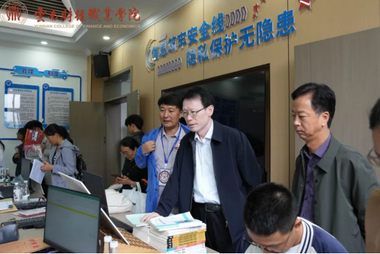 学校领导们到各个新生报到点,细致察看报到流程,了解新生报到情况,与新生及家长亲切交流。