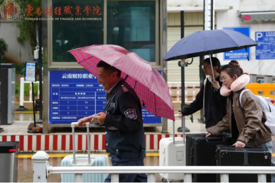 当新生在学长伞下露出笑容,当所有行李都安稳躺进宿舍衣柜——我们终于读懂这场雨的深意:它洗去了旅途的疲惫,让云财职的温度愈发清晰。这里没有"淋雨一直走"的孤单,只有"我们共撑一把伞"的温暖。