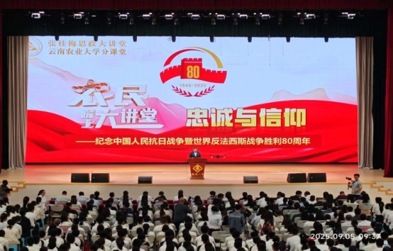 为纪念中国人民抗日战争暨世界反法西斯战争胜利80周年,9月5日上午,学校组织“青马工程”培训班学员参加张桂梅思政大讲堂云南农业大学分课堂——农民院士大讲堂“忠诚与信仰”的主题宣讲。学校党委副书记仲新出席活动。