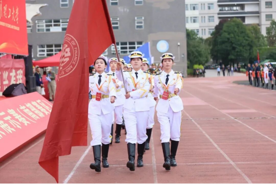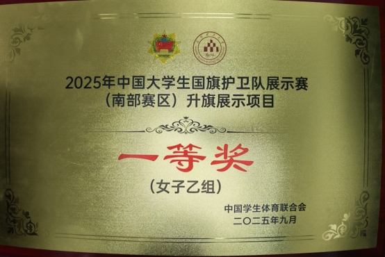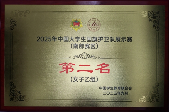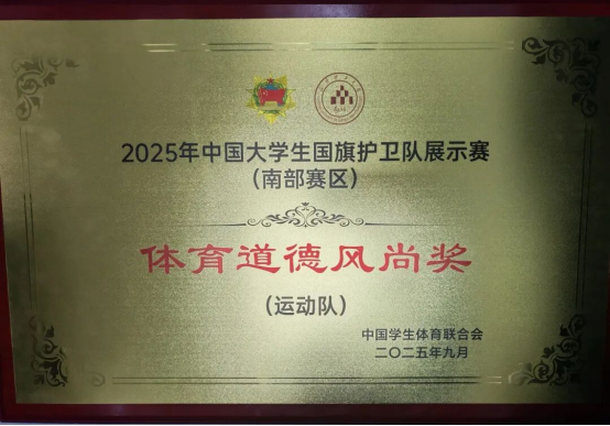 我校派出由武装部教师任领队,学校国防教育实践团学生骨干任教练员,18名女生组成的运动队,征战高职高专组比赛。经过激烈地角逐,我校国旗护卫队凭借扎实的军事素养和出色的临场表现,斩获升旗展示项目一等奖、团体总分第二名两项大奖,成功晋级中国大学生国旗护卫队展示赛全国总决赛。此外,我校运动队在比赛中展现出遵守比赛规则、尊重对手和裁判、胜不骄败不馁的精神风貌,还获得了“运动队体育道德风尚奖”殊荣;洪萱、陆然、张琳三名选手荣获“运动员道德风尚奖”;黄伟荣同学因出色的指导,被大赛授予“优秀教练员”荣誉称号。