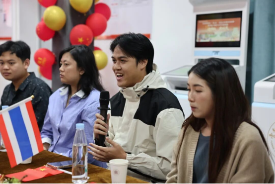 泰国留学生代表用中文发言,肯定选择该校的正确性,称赞校园环境、教学设施及师生帮助,表露出对校园的喜爱,并愿推荐朋友来校就读。
