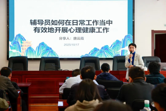 下午的培训内容涵盖心理健康教育、学生奖助政策及征兵工作等多个实务模块。国家二级心理咨询师唐云霞就“如何有效开展心理健康工作”进行了专业分享;学生处资助干事对学生奖助政策作了系统解读;学生处负责人则针对大学生征兵工作进行了专题培训,为辅导员开展相关实务提供了有力指导。