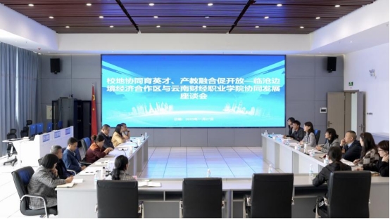 11月27日上午,工作组赴临沧边境经济合作区开展座谈会。会议以“校地协同育英才、产教融合促开放”为主题,旨在立足边合区口岸经济与园区经济发展需求,聚焦边境高技能职业人才培养,打造校地合作新样板。双方就合作协议内容及后续合作方向展开深入交流,围绕产教融合、人才输送、资源共享等关键议题达成多项共识。