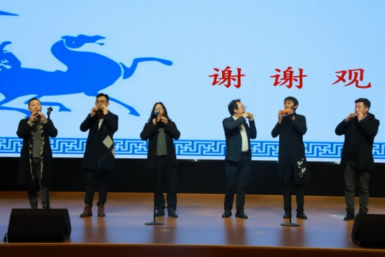 在互动体验环节,各位老师现场通过不同的非遗乐器,演奏了一曲曲旋律婉转、动人心弦的乐曲,乐声仿佛穿越千年,牵动着每一位师生的心弦。精湛的演奏赢得了现场经久不息的掌声,也让大家真切感受到非遗技艺的独特魅力和中华优秀传统文化的博大精深。演奏结束后,陈相吉老师还与同学们展开了热烈的互动交流,他耐心解答大家关于埙的音色特点、演奏技巧、传承现状等方面的疑问。
