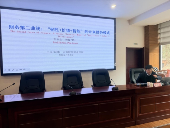 为探索数字经济时代财务转型的方法和路径,2025年12月25日下午,学校邀请云南财经大学教授彭家生博士给师生们带来“财务第二曲线:构建韧性、价值与智能驱动的未来财务体系”的主题讲座,共同探讨数字经济时代的财务转型。本次专题讲座由科学技术处主办、智慧会计学院承办。