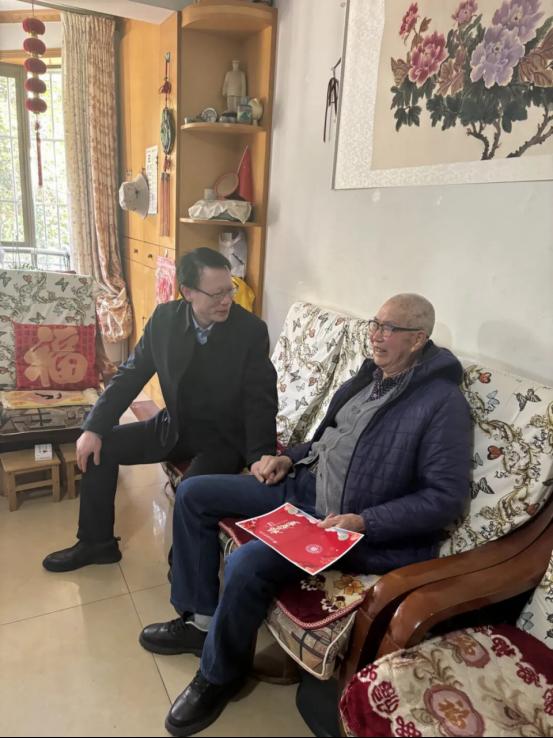 走访过程中,校领导与退休教职工们促膝长谈、共话家常,详细询问他们的身体状况、生活需求,耐心倾听老同志的心声与诉求,并向他们普及防范非法金融活动、非法集资的相关知识,切实筑牢老同志的财产安全防线。一句句暖心问候、一声声真切关怀,让退休老同志们在寒冬中感受到了学校大家庭的浓浓暖意。