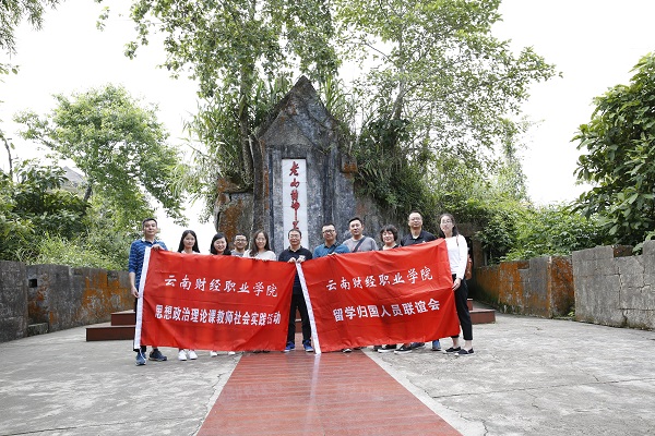 云南财经职业学院思政部、宣统部及学院留学归国人员联谊会的教师一行12人,于2018年7月13-15日,怀着崇敬之心,吹响了学习“老山精神”集结号,开启了以爱国奉献为核心的“不怕苦、不怕死、不怕亏”的“老山精神”实践学习之行。