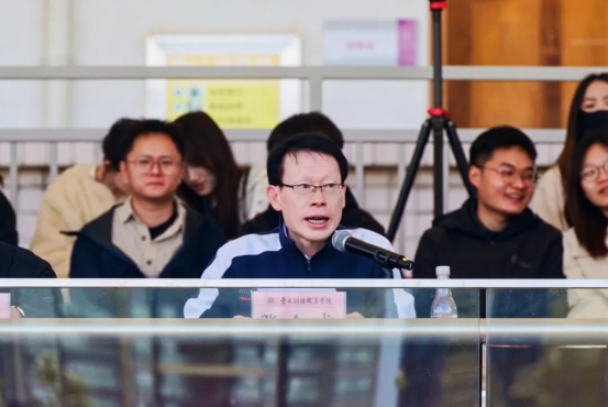 入场仪式结束后,全体人员肃立,奏唱中华人民共和国国歌,五星红旗冉冉升起,爱国情怀与体育精神在这一刻深度交融。学校党委书记张金甫致开幕辞,他指出,学校始终以“立德树人”为根本,将体育作为“五育并举”的重要载体,通过深化“3813”发展战略与“1186”行动计划,构建起课内外一体化的体育育人体系。张金甫勉励全体师生以运动会为契机,将拼搏精神转化为干事创业、求知向学的动力,为“双高”建设与人才培养注入活力,投身学校“十五五”规划建设,为实现学校内涵式发展、培养高素质技术技能人才贡献更大力量!