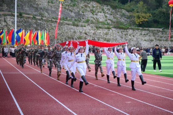 《运动员进行曲》拉开了运动会的序幕。运动员方队迈着铿锵步伐依次亮相,整齐的队列与嘹亮的口号彰显着云财职人 的精神风貌;裁判员方队身着统一服装,神情庄重,展现出专业严谨的执裁风范。紧随其后的彩旗队挥舞着五彩旌旗,如流动的彩虹穿梭赛场,既象征着学子们多彩的青春理想,也寓意着校园体育文化的蓬勃生机。