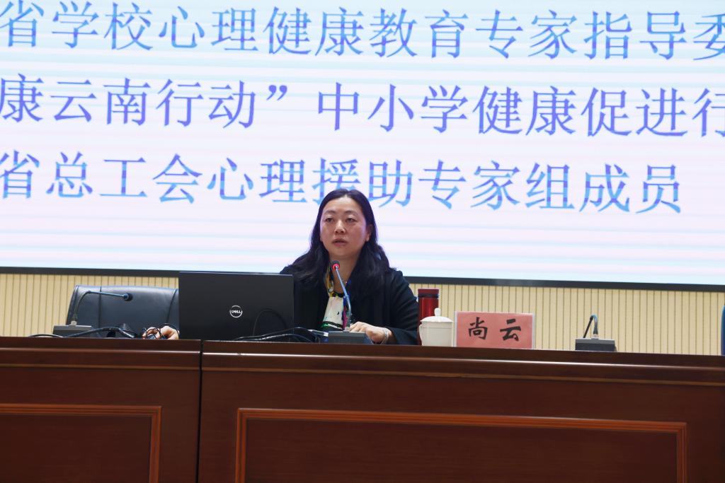 尚云教授以“教师情绪与压力疏导”为题,围绕心理健康素养的内涵、当前教师心理健康现状、造成负面情绪的因素、控制负面情绪的方法等几个方面的内容,配以生动典型的案例,进行生动的讲授。