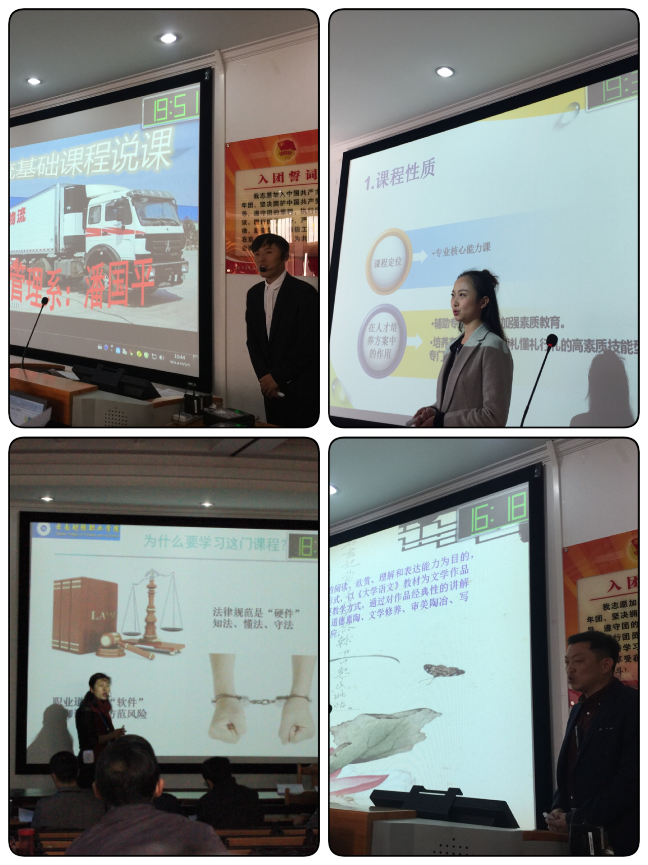 参加此次课程说课的11位老师均具备扎实的教学功底和丰富的教学经验,对自己所教授的课程有着全面、系统的认识。每位参赛教师都充分展现了自己研究、探索职业教育的成果,华丽的课件、精彩的内容、新颖的教学方法、慷慨激昂的讲解,体现了教师的教学新理念、新思路,展示了教师优秀的职业素养和教学能力。