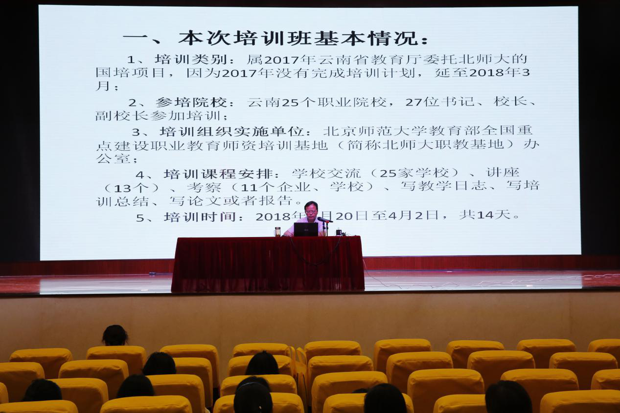 为进一步明确高职院校办学目标,树立良好办学理念,提高办学质量,2018年5月18日下午14:20全校专兼职教师在学校大礼堂听取了陶昌学院长参加北师大云南省职业院校校长培训班的情况汇报。