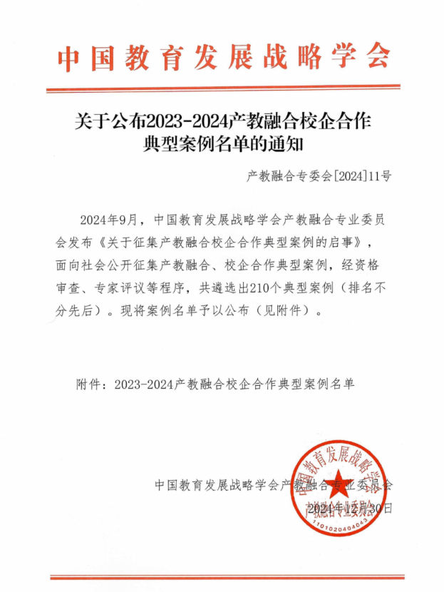 近日,中国教育发展战略学会产教融合专业委员会公布了最新的产教融合、校企合作典型案例名单,学校信息工程学院“三应三求四手四融合”特色育人模式--基于信息安全技术应用专业群人才培养实践、财税与金融学院“数”联校企,“智”造未来--数字经济产业学院创新人才培养模式两个典型案例成功入选该名单。