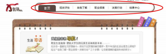 需按要求完成所有项目内容(包含:现状评估、自我了解、职业探索、决策行动板块的所有内容),最终在“结果中心”导出自己的“生涯计划书”。