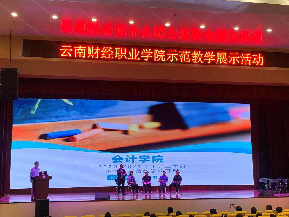 4月29日下午15点30分,首场“示范教学展示”活动由会计学院组织,在我校大礼堂成功举行。活动分为四个环节:教师课堂展示、学生点评、专家点评、校领导总结。学校校长陶昌学,副校长沈豫琼参加了展示活动,全体专兼职教师现场观摩教学。
