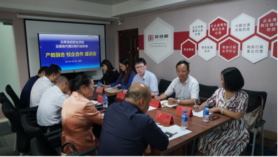 2021年7月27日,我校党委书记张金甫,党委副书记、校长陶昌学,招生就业与合作交流处副处长是石彬等一行4人前往云南省代理记账行业协会的会员单位财合税财税服务(昆明)有限公司,与协会企业家们进行产教融合、校企合作座谈会。