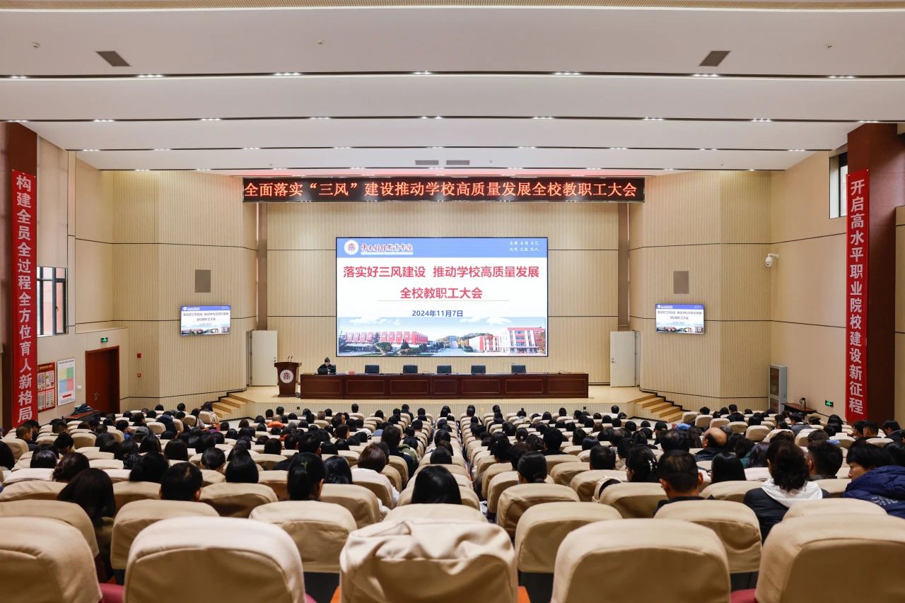 为深入推进建设特色教风、学风和工作作风,进一步加强学校内涵建设,提升教育教学质量和人才培养水平。近日,学校在铭德楼报告厅召开“落实好三风建设,推动学校高质量发展”教职工大会。党委副书记、校长邹丽作大会总结并提出工作要求,会议由党委副书记仲新主持。