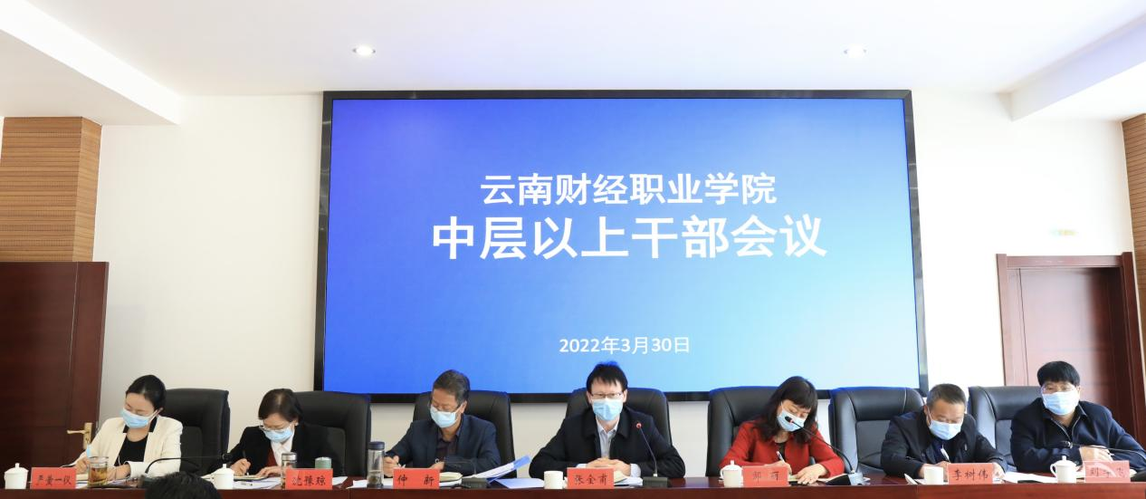 2022年3月30日,学校在财苑楼多媒体教室召开中层以上干部会议,征求对绩效工资考核分配办法等7个文件的意见建议,学校党委委员、校领导、全体中层干部参加会议。会议由党委副书记、校长邹丽主持。