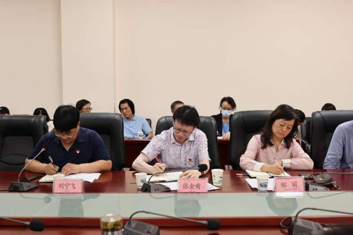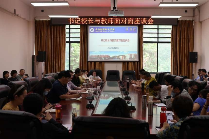 在欢庆中国共产党成立101周年之际,为推进学校改革发展工作,调动广大教师教书育人、立德树人的工作积极性,促进学校教育事业发展再上台阶,学校于2022年6月30日下午在财苑楼会议室召开书记校长与教师面对面座谈会。党委书记张金甫、校长邹丽、副校长刘宁飞出席座谈会,办公室、教务处、人事处、宣传部、继续教育学院负责人,各二级学院、教学部45名教师代表参加座谈会,座谈会由刘宁飞主持。