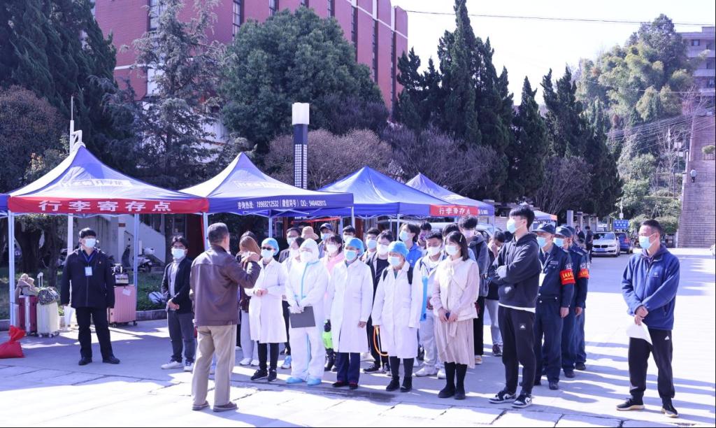 首先进行学生返校防疫演练。全面演练了学生返校有序分流及行李消毒,对学生进行测温并查验云南健康码、绿色行程卡及核酸检测阴性证明,对发现体温及“两码”异常的学生进行现场隔离观察,对有疑似新冠肺炎症状的学生启动应急处置预案。