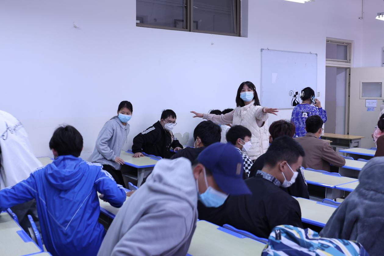 模拟在正常教学过程中,某同学出现发烧咳嗽等身体不适症状,班长第一时间询问情况并向班主任报告,任课教师指挥在场人员戴口罩、与发热同学保持距离后停止移动。